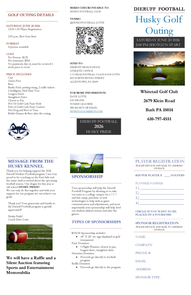 Our 8th Annual Golf Outing is June 20! Attached is the flier! Any questions or to volunteer or sign up to play please contact Dave at 610-428-2156!"